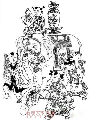 象在中國傳統文化中是吉祥、太平的象征,它性情溫和,知恩圖報,一直深受中國人的喜愛。傳說五帝之一的舜是中國歷史上馴服野象耕田犁地的第一人,他死后陵墓前曾出現大象刨土、彩雀銜泥的瑞兆,這應該是“太平有象”的最早傳說。此后,人們運用諧音、象征等手法,把“太平有象”用圖畫、雕刻等形式表達出來,寓意天下太平、五谷豐登。