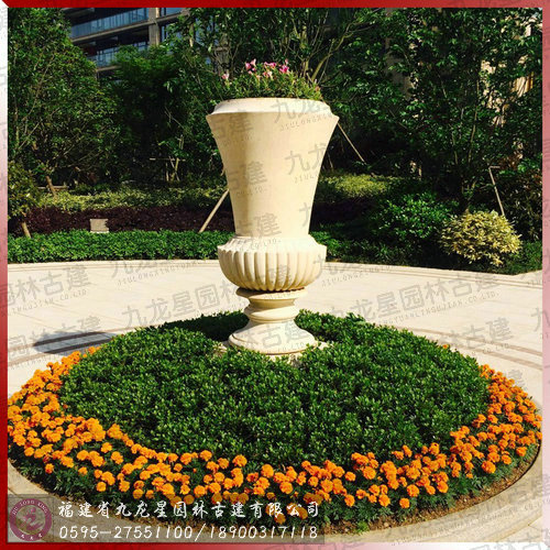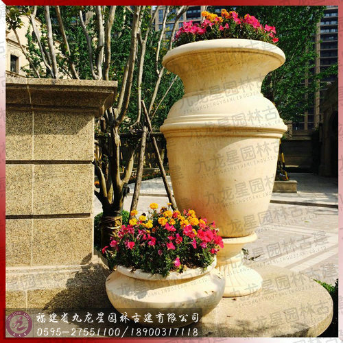 埃及米黃花缽-房地產樓盤小區石雕案例高清圖