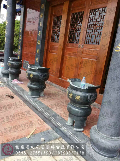 福州禪霞府青石香爐獅子仿古石桌椅安裝完畢