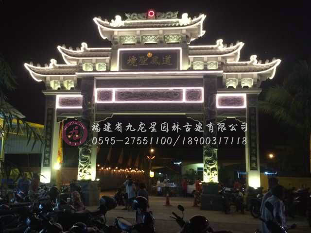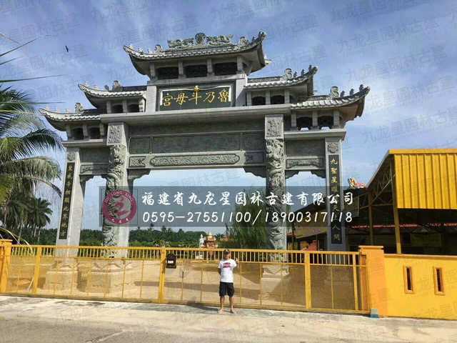 馬來西亞青石雕刻三門四柱石牌坊效果圖