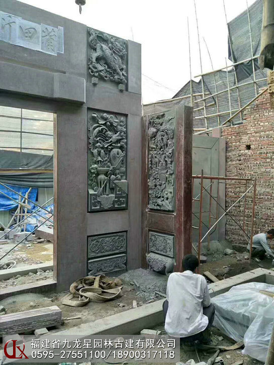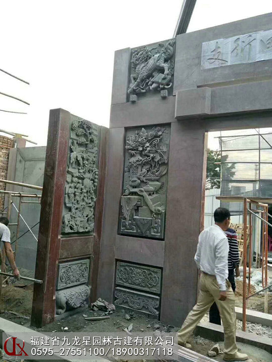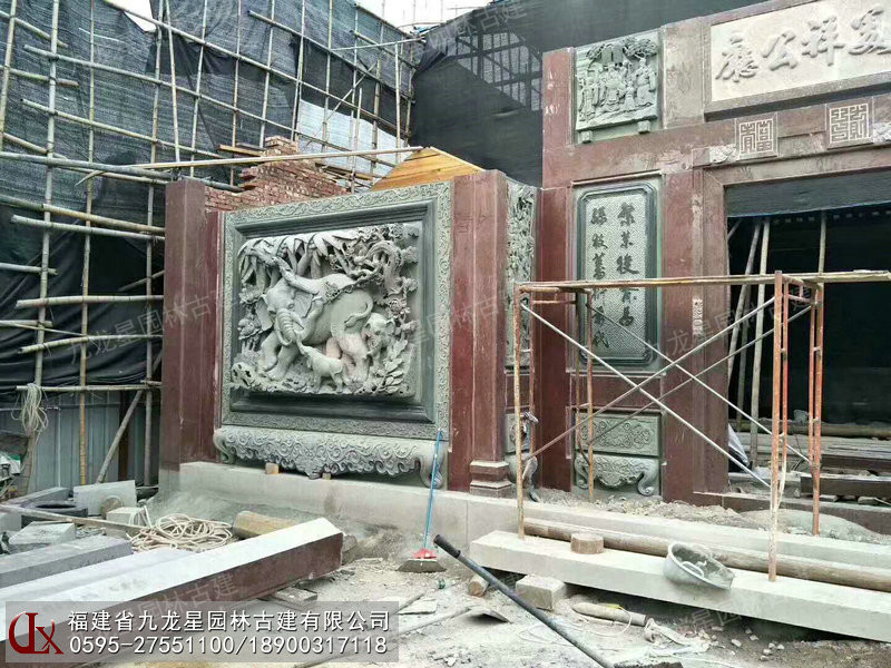 寺廟墻面浮雕壁畫安裝現(xiàn)場 九龍星園林古建