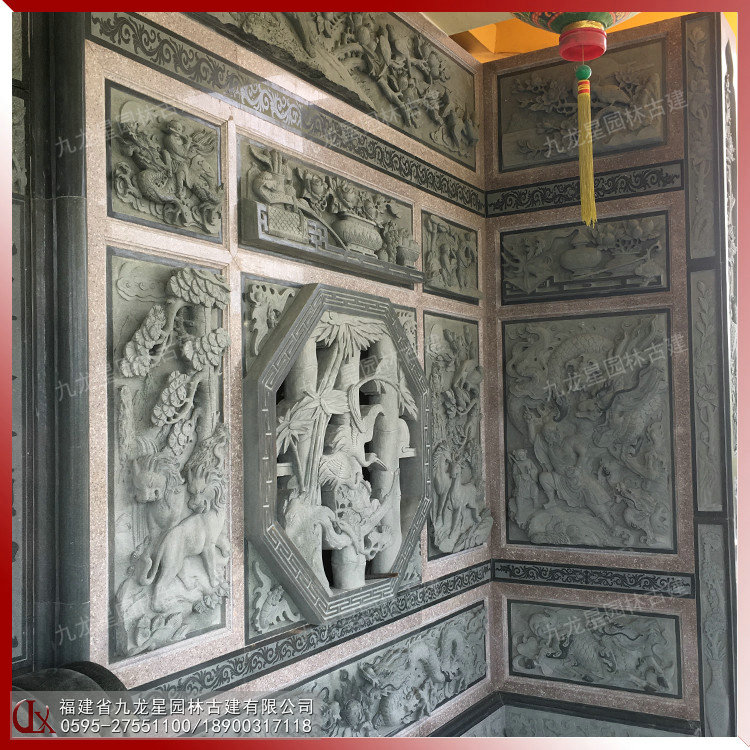 石雕浮雕壁畫(huà)在古建筑外墻中占據(jù)重要的地位。古建筑的石雕浮雕在內(nèi)容、形式和材質(zhì)上與圓雕一樣豐富多彩。建筑石雕浮雕常見(jiàn)的材料有青石、花崗巖、白麻、芝麻黑、羅源青、古田青等等。浮雕的雕刻技藝和表現(xiàn)體裁與圓雕基本相同。